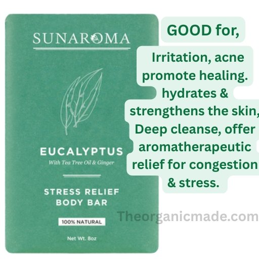 This Eucalyptus Stress Relief Body Bar is Formulated with Pure Eucalyptus Oil, Tea Tree Oil and Ginger and free of artificial fragrance, it’s a therapeutic way to ease feelings of stress and anxiety, by Sunaroma
